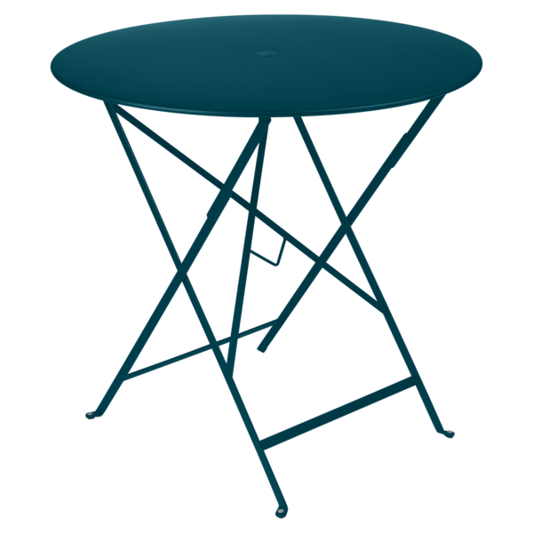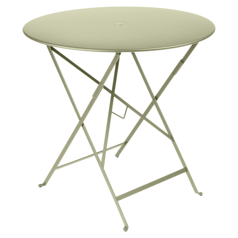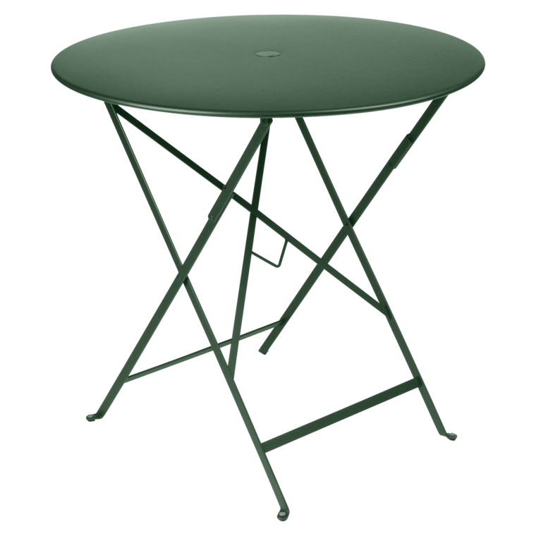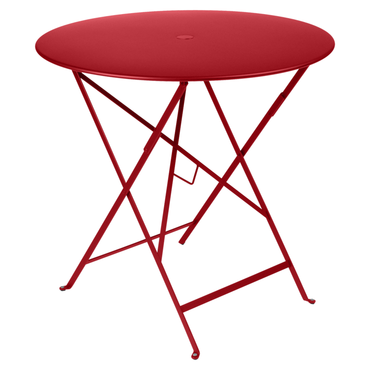La table Fermob en métal dispose d'une structure en acier laqué traitée anti-corrosion, d'un trou central et se plie pour un rangement gain de place. Elle s'associe parfaitement avec les chaises Bistrot Fermob.