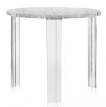 Ce concentré de technologie est moulé dans la matière pour obtenir cette surface si caractéristique de cette collection, composée d'une alternance de creux et de pleins comme une broderie. T-Table se décline en version transparente, colorée et noir opaque. Elle existe en 3 hauteurs différentes ( Basso: H 28 cm, Medio: H 36 et Alto: H 44 cm) et convient aussi bien pour une utilisation intérieure qu'extérieure.