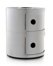 Réf. : KA5966 Créé par Anna Castelli Ferrieri co-fondatrice de Kartell, le componibili n’a pas pris une ride depuis 1968. Ce meuble de rangement s’utilise dans toutes les pièces de la maison avec des usages assez variés comme table de nuit, meuble de rangement dans le salon, la cuisine, le bureau, ou la salle de bain... Il est épatant de sa grande fonctionnalité et praticité, ce qui lui a valu d’être exposé au Musée d'art moderne de New York et au Centre Pompidou. Le componibili existe en deux, trois ou quatre éléments non dissociable en diamètre 32cm, ou en élément composable de diamètre 42cm. Cette année une nouvelle gamme de couleur tendance agrandie la famille.