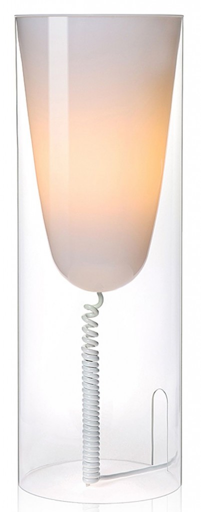Dévoilé au salon de Milan 2007, la lampe Toobe, créée par Ferrucio Laviani pour Kartell, joue sur la transparence et le dégradé de couleur de son tube au design ultra-simple.