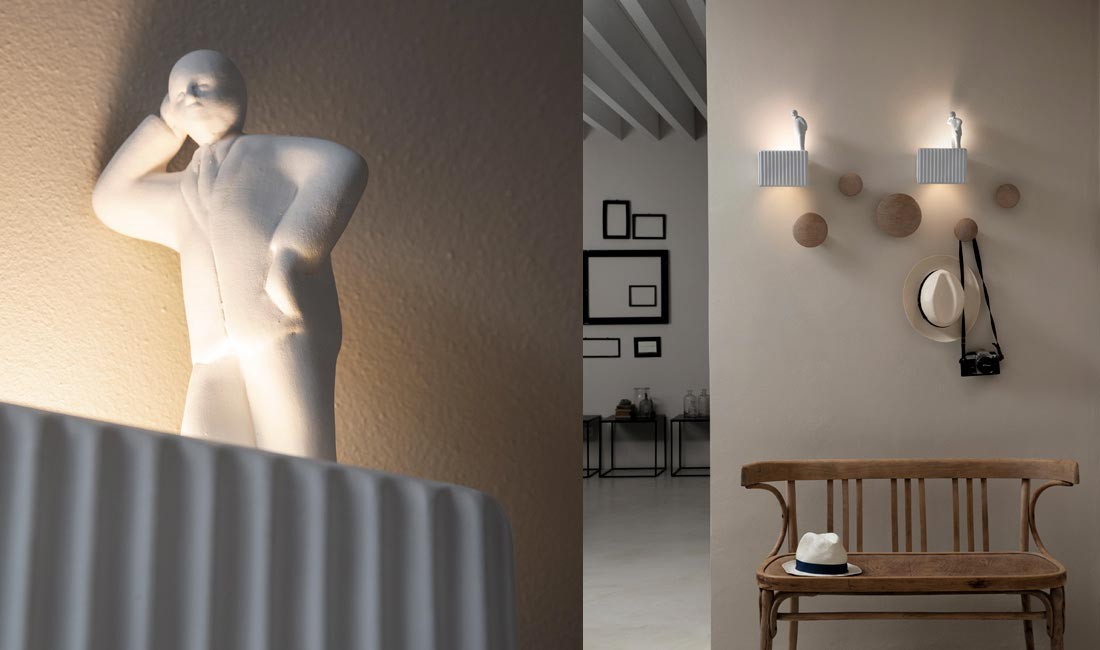 Toute la poésie de cette applique Karman repose sur le petit homme que l'on peut choisir d'ajouter : debout, assis, ou accoudé au mur. L'applique, comme les accessoires, sont en céramique blanche.