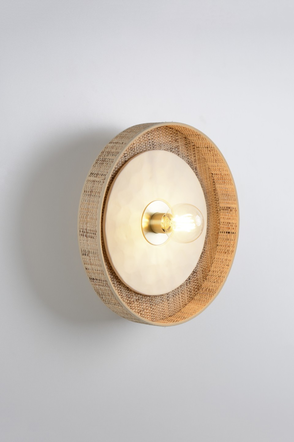 • Matière Cylindre en bana, disque en céramique bosselée mat, patère murale en métal adaptable DCL