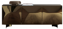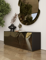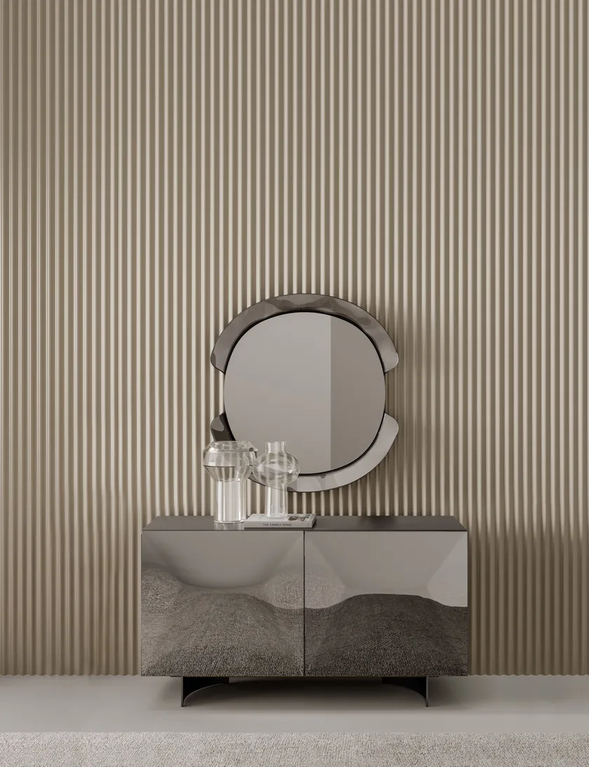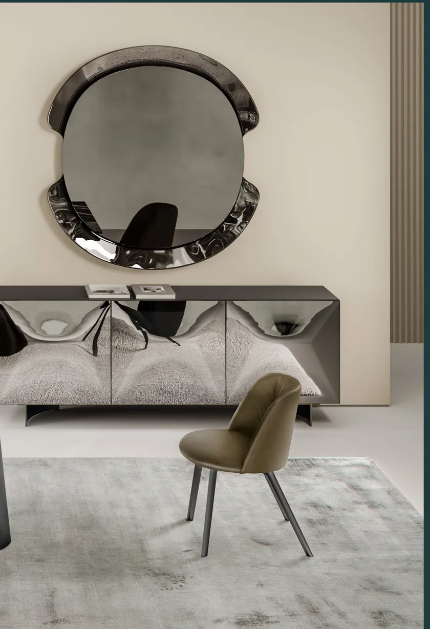 Le Bahut Kunta de la marque Bontempi est une véritable œuvre d'art en matière de mobilier. Ce buffet design se distingue par sa structure en bois, habillée de côtés et de portes en bois laqué, disponibles en finitions miroir bronze ou miroir fumé. Les façades en miroir créent un jeu de relief et de reflets, ajoutant de la profondeur et un style singulier à votre intérieur.