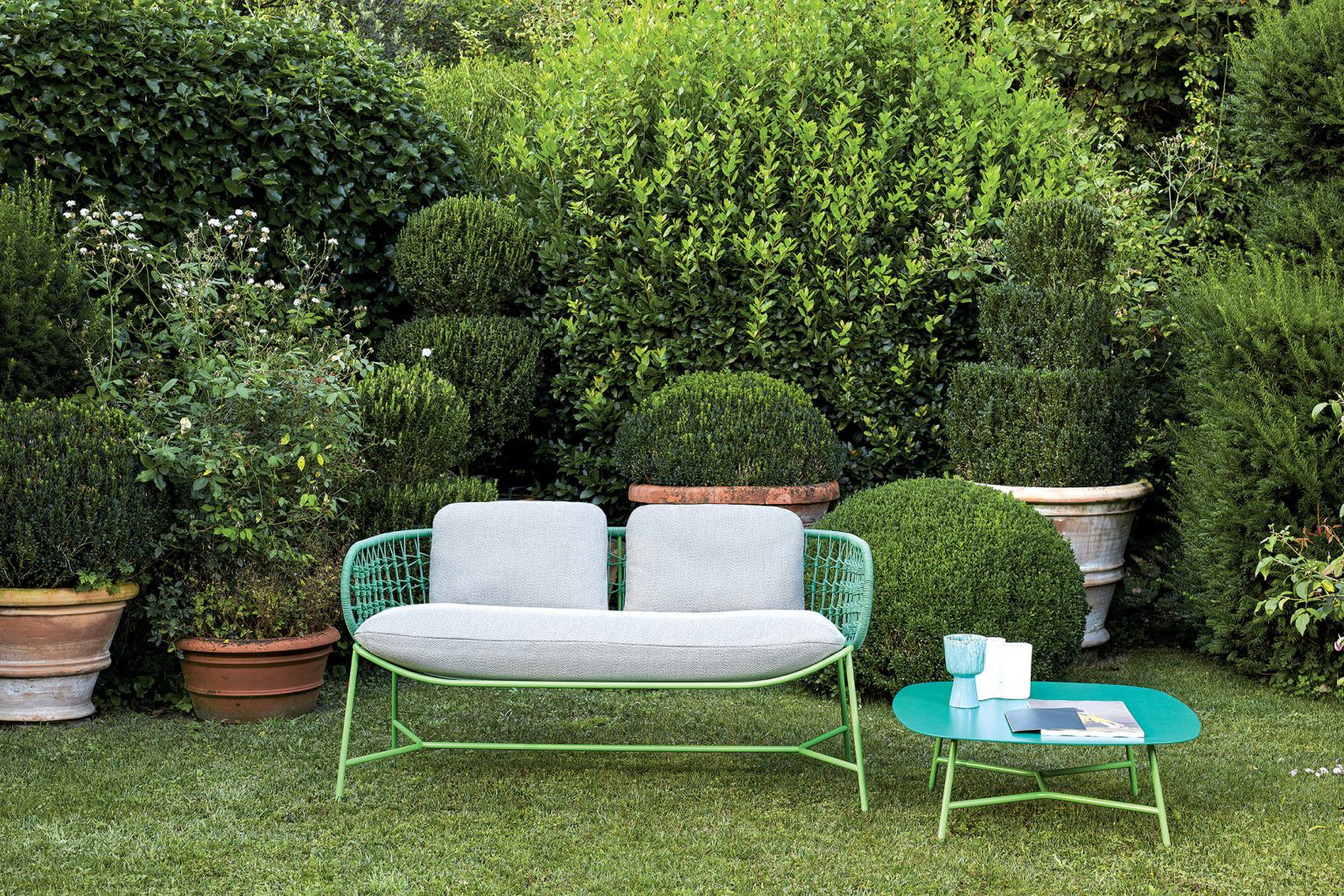 Accueil > Jardin > Canapés et Fauteuils > Banquette Emilie et son coussin d'assise - Structure acqua Corde verde coussin 5077 - Castil