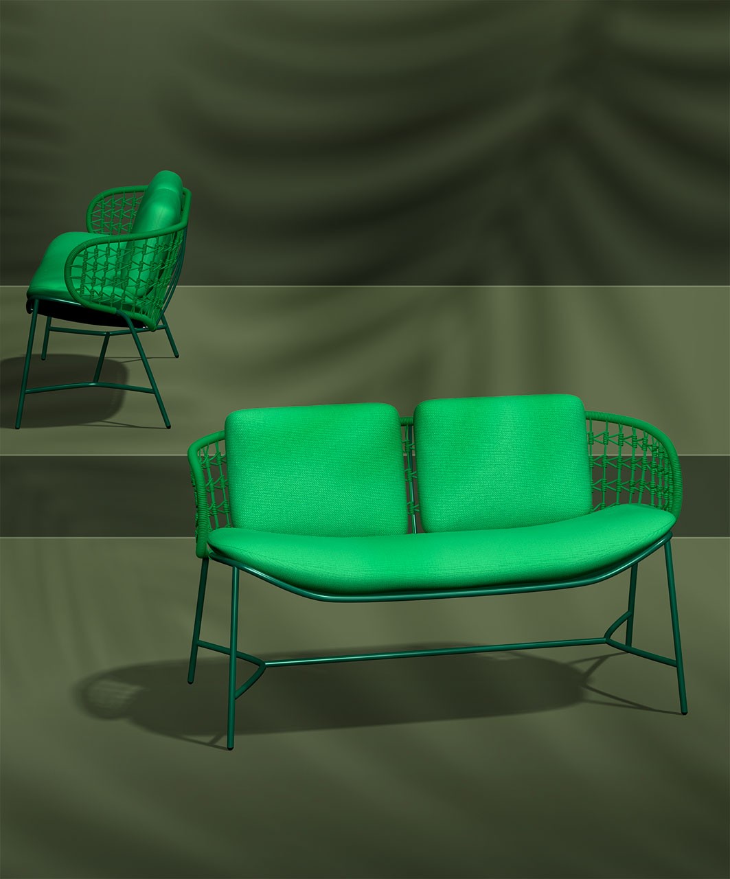 La collection Emilie, évoquant un certain chic avec ses lignes très fines et le travail de la corde croisée est le fruit du travail des designer de Studioventotto. Studioventotto est un studio multidisciplinaire italien fondé Elena Albricci, architecte, et Claudio Fiumicelli, designer de produits.