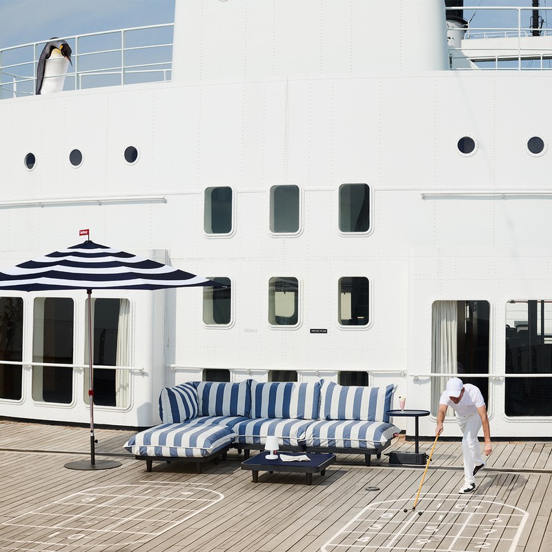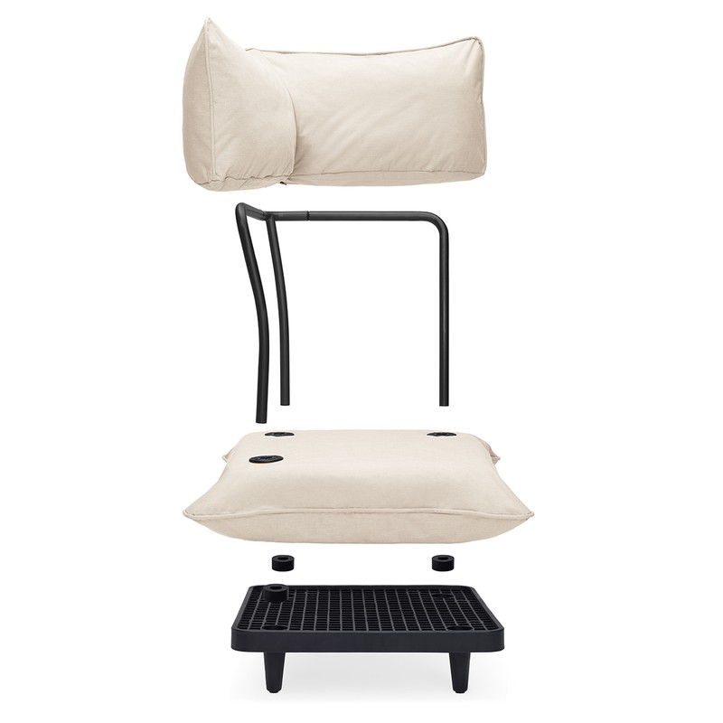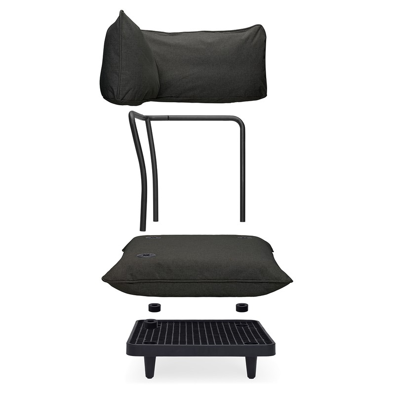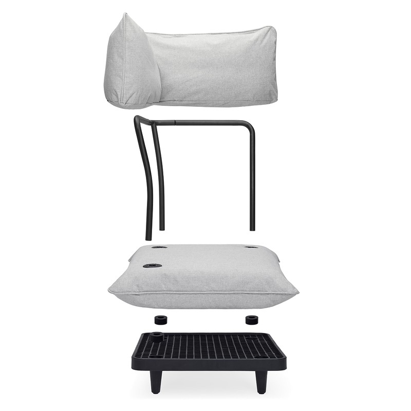 Le canapé Paletti peut vous paraître détendu, mais il a été mûrement réfléchi. Le cadre robuste est partiellement fabriqué à partir de matériaux recyclés. Vous pouvez même laisser votre chaise longue sous la pluie. Le dossier en acier résiste à la corrosion et son tissu robuste et résistant à l'eau conserve sa belle apparence quelle que soit la météo.