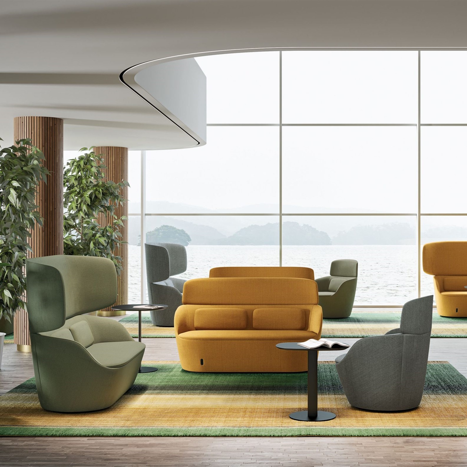 Le canapé Radar se distingue par son design élégant et enveloppant, conçu pour les espaces collectifs et multifonctionnels. Avec ses lignes fluides et son cadre en métal, il offre à la fois confort et robustesse, tout en apportant une touche de sophistication à l'environnement. Disponible en version deux places, le Radar propose trois hauteurs de dossiers pour répondre à différents besoins d'intimité, tout en restant connecté à l’espace environnant.