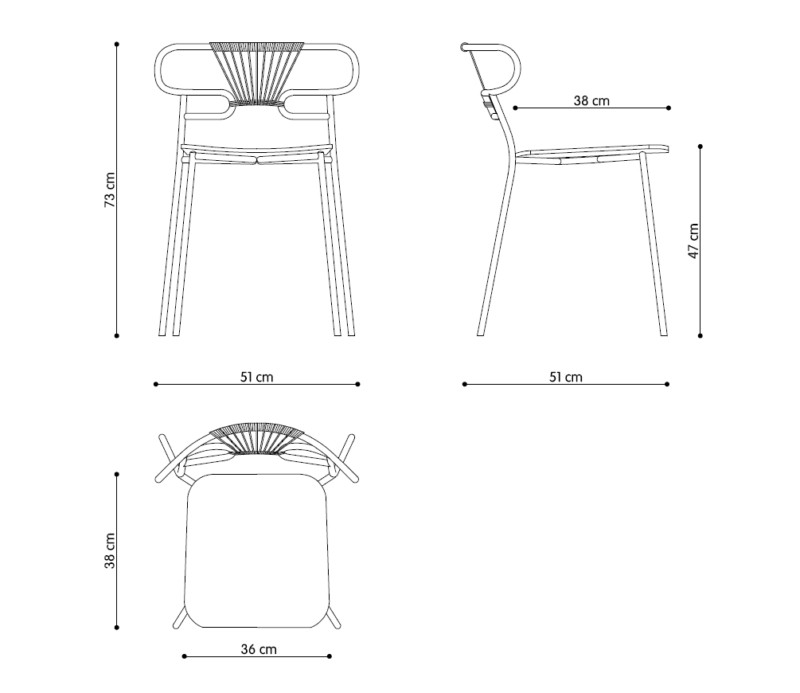 • Caractéristiques Existe avec accoudoirs. Disponible sans cordage. Empilable. Existe en tabouret H.66 et H.76 cm. Disponible dans un grand choix de finitions et coloris, n'hésitez pas à nous contacter