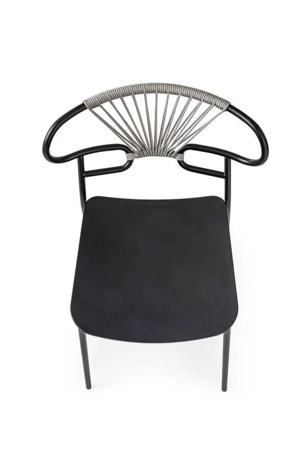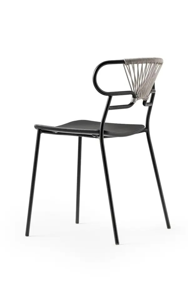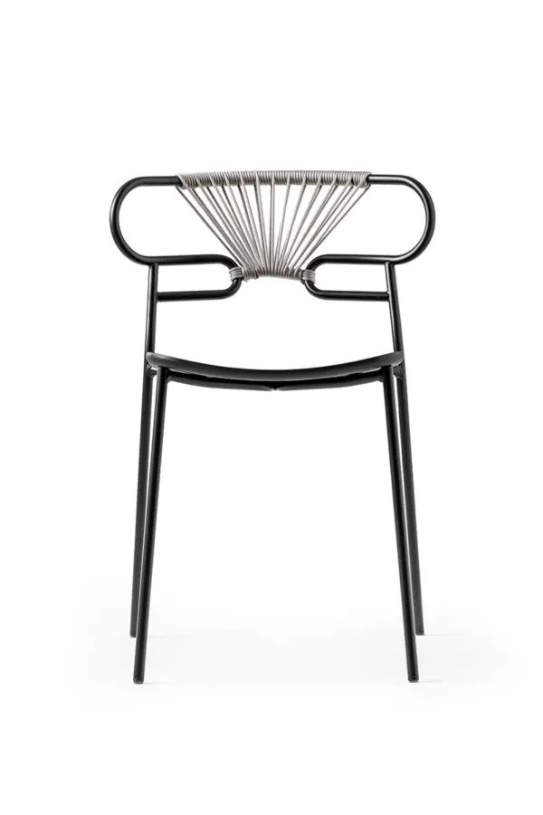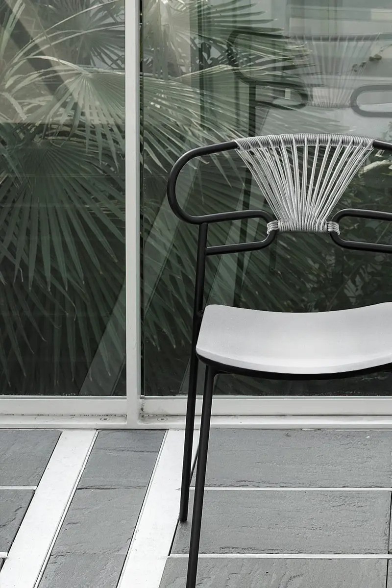 • Matière Structure en métal peint. Assise en polyuréthane intégral. Dossier avec tissage de corde coloré