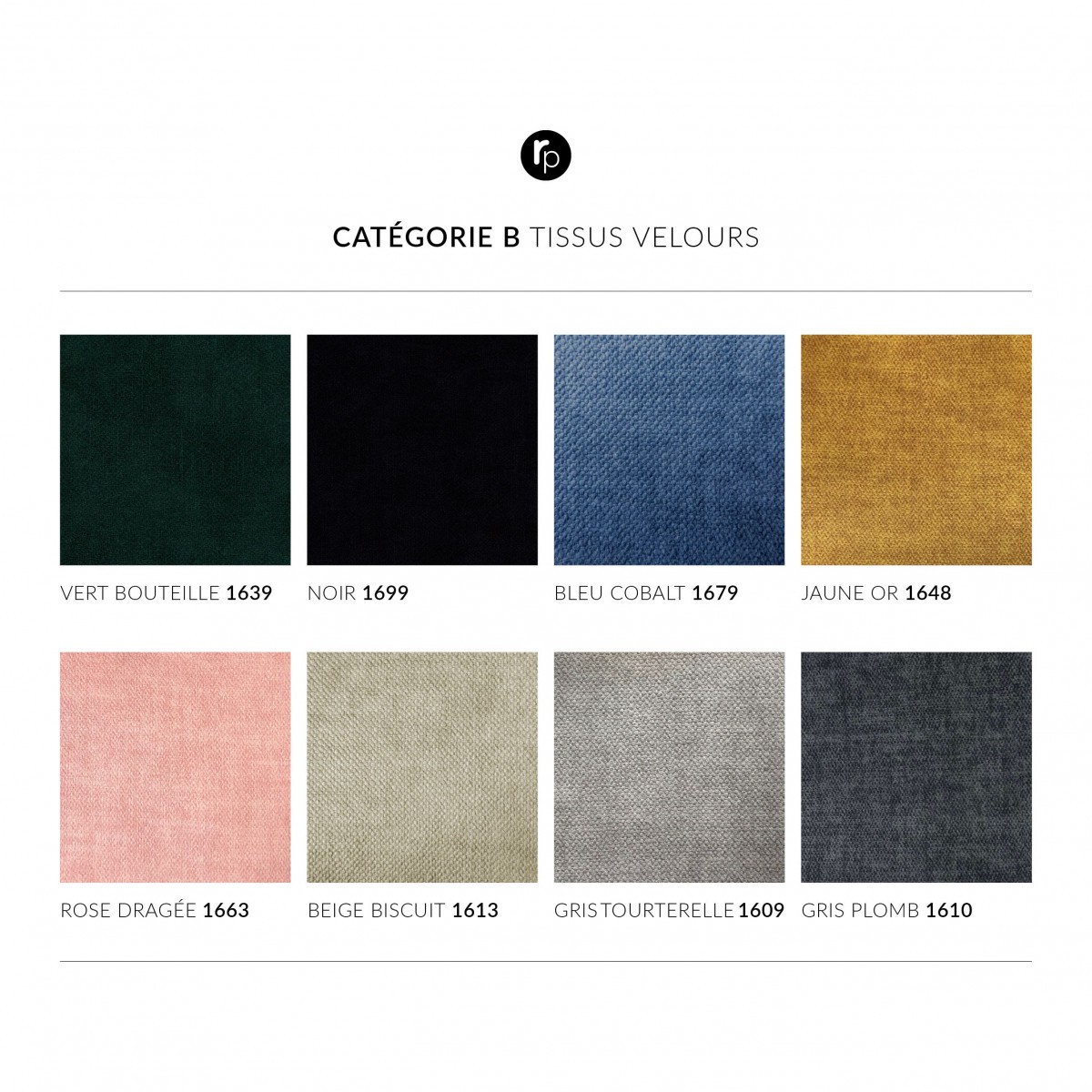 • Velours 100% polyester. Très résistants (Martindale 50 000 tours)