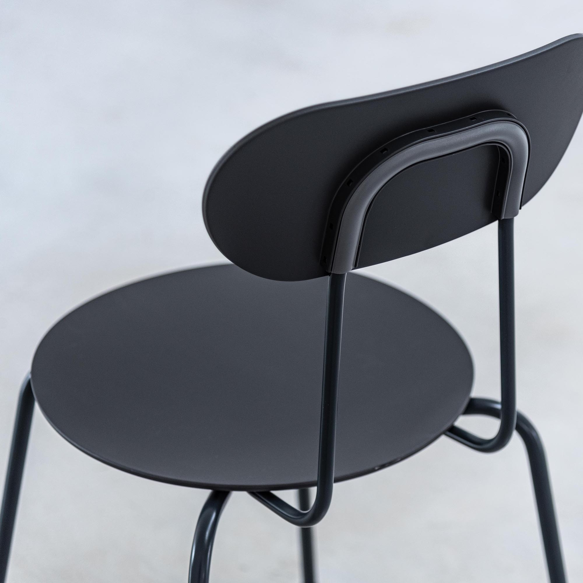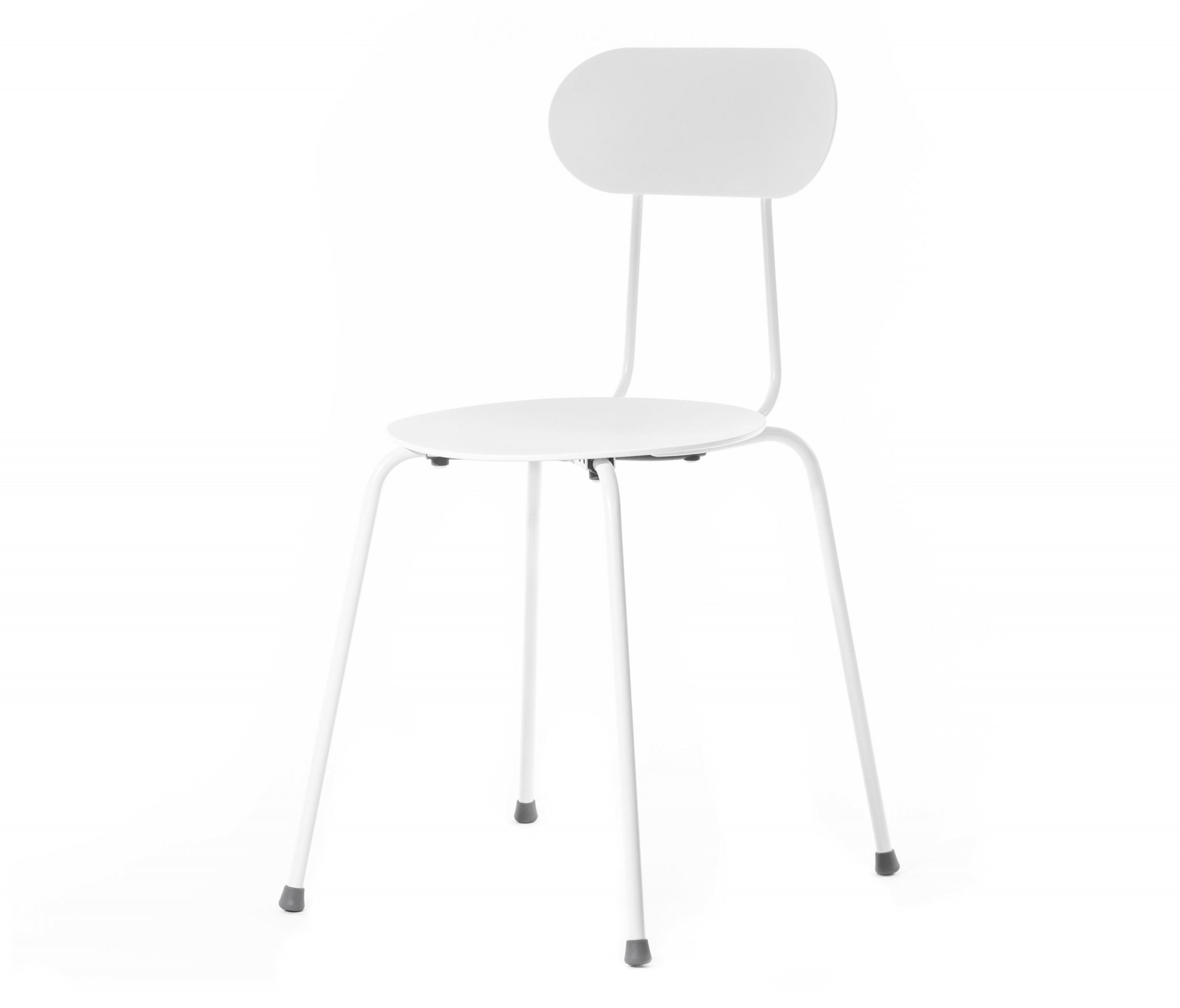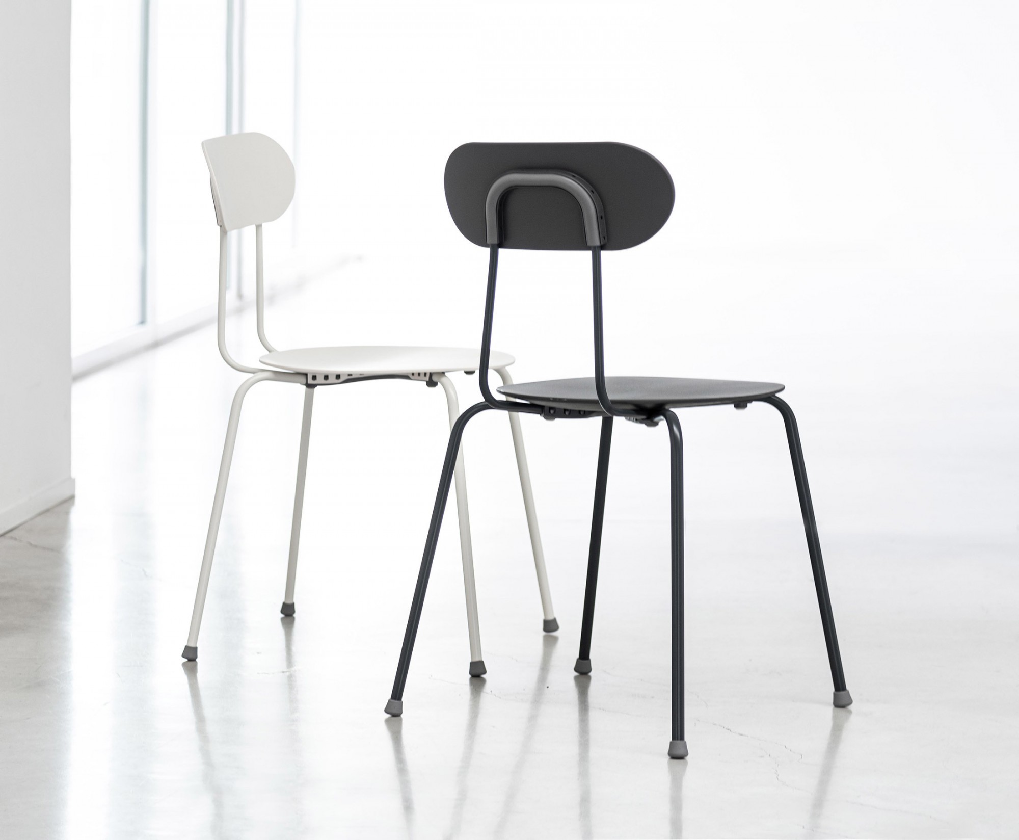 Mariolina rappele le style des annés 50, mais avec des détails en plus. La section des pieds est en effet plus mince et précise. Assise et dossier ne sont pas fixés à la structure par vis ou rivets, mais par une série de nervures en plastique qui agrippent la structure en métal à l’arrière de l’assise et du dossier. Mariolina est empilable jusqu’à 12 pièces.