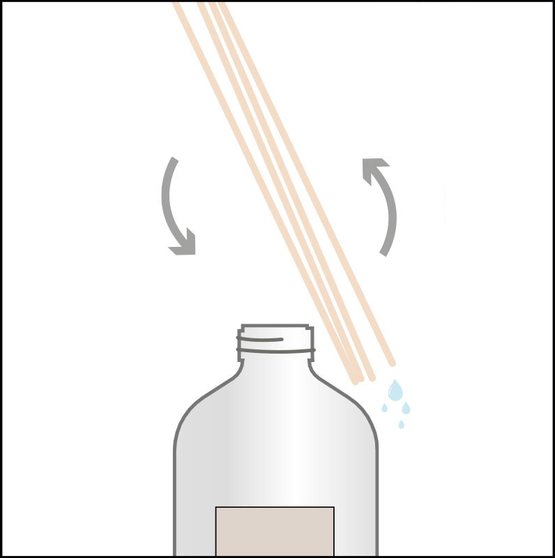 • Matière Bouteille en verre épais et bâtonnets en osier.
