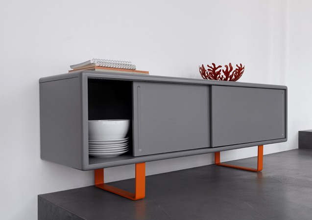 • Caractéristiques Dimensions : H56,5 x L153,5 x P40 cm. 2 portes coulissantes. Structure RAL7046 et pieds RAL2004.