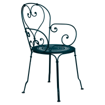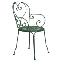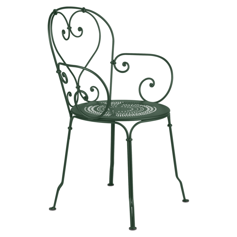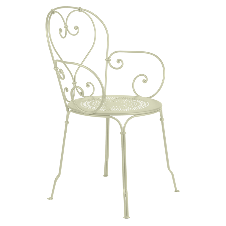Un parfum de roses, le charme d'Antan et une fabrication selon le modèle original de 1872 ! La collection 1900 arbore un style rétro romantique donnant à votre jardin un charme inégalable dans la plus pure tradition: des volutes et bagues forgés à la main, une assise en tôle acier perforée et des coloris anti-UV font de la chaise empilable 1900 un élément de qualité pour fleurir votre jardin d'autrefois.