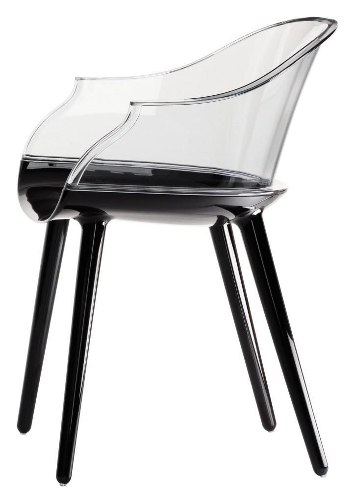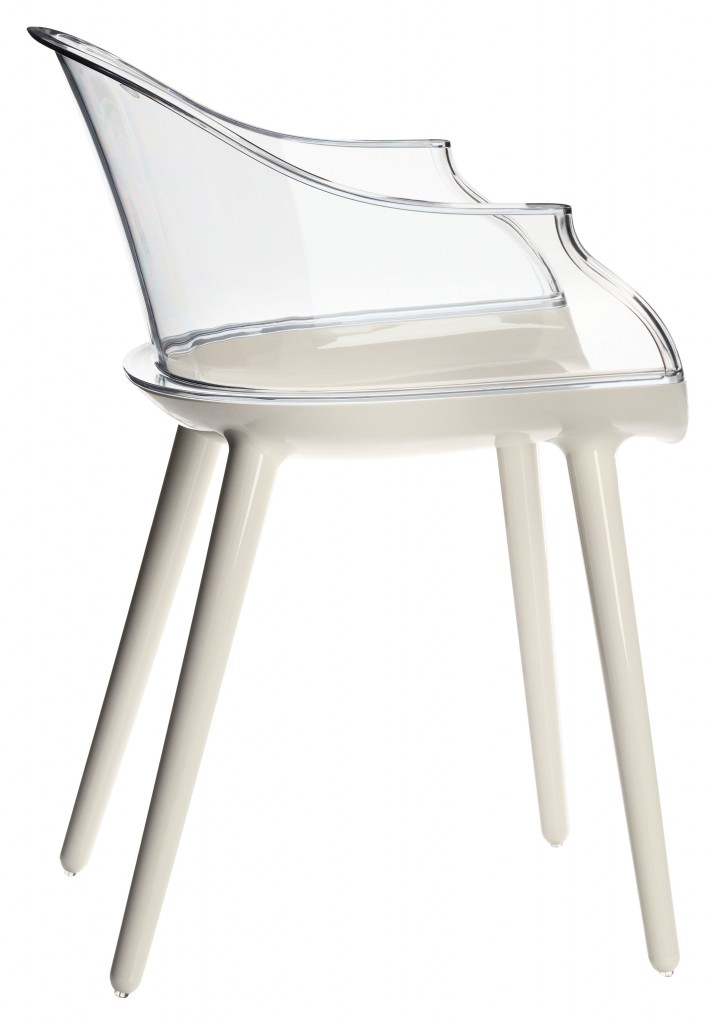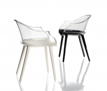 Présentés au Salon del Mobile 2011, les fauteuils Cyborg de Magis se présentent dans diverses versions avec des formes différentes de dossier et des combinaisons de matières. Dans cette version, le fauteuil Cyborg est conçu entièrement en polycarbonate: Marcel Wanders joue sur la transparence des dossiers déclinés dans plusieurs coloris qui se conjuguent avec l'opacité et la brillance de la structure et de l'assise. Ses lignes courbes et enveloppantes en font un fauteuil raffiné et élégant, également conçu pour l'extérieur.