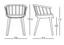 • Caractéristiques Dimensions : H 78.5 x L 58 x P 53 cm. Accoudoirs : 72 cm. Assise : 46 cm.