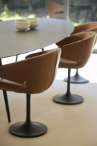 Chaque fauteuil de repas Morisot peut être personnalisé grâce à une sélection de piétements variés – central, en araignée, en X ou en traîneau – permettant de s'adapter à vos préférences esthétiques et pratiques. La marque Joli, synonyme de qualité et d'innovation dans le design belge, vous permet de contrôler chaque détail de vos meubles. Avec Joli, les finitions, les styles variés et les projets sur mesure répondent aux dernières tendances pour s’intégrer parfaitement à votre quotidien.