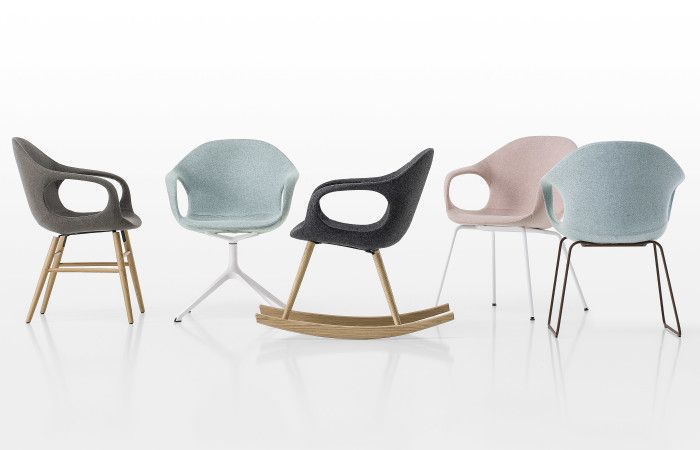 Différents piètements sont disponibles afin d'obtenir un champ d'utilisation très vaste : habitat, bureaux, cafés, espaces d'attente.... Vous avez le choix entre les traditionnels quatre pieds, un piètement ""traîneau"", un pied central, un piètement en hêtre naturel ou encore une version rocking chair."