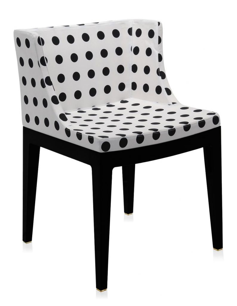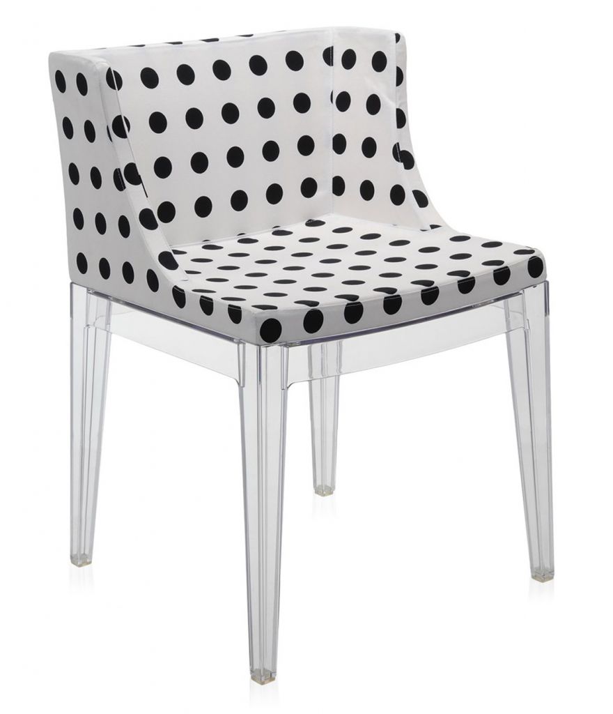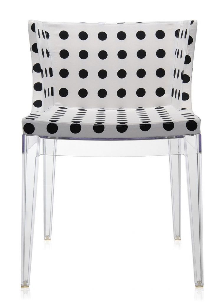 Suite aux célèbres fauteuils de la collection "Mademoiselle", Kartell dévoile Mademoiselle Starck en développant la gamme de tissu. Un design linéaire et harmonieux caractérisé par une structure transparente et une assise et dossier qui se parent d'un revêtement de tissu noir et blanc, décliné dans trois motifs chics et intemporels: un tissu pied-de-poule et deux tissus à pois.