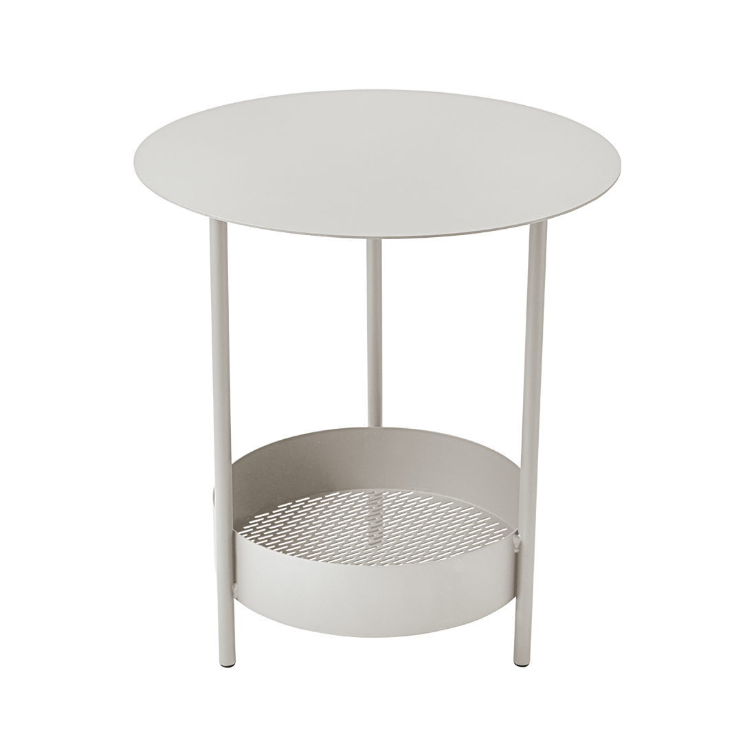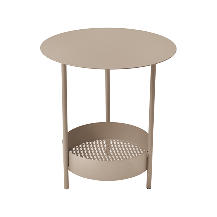 Réf. : FER3270 Alliance harmonieuse de rondeur et de dissymétrie, le guéridon Salsa se compose d’un piètement tripode gracieux et original, surmonté d’un plateau circulaire. Un bac ajouré à la base vient complèter ce meuble peu encombrant et très pratique. Multifonctions, Salsa peut être utilisé comme support pour pots de fleurs, bout de canapé, table d’appoint, desserte ou encore mini bar. Décliné dans une multitude de coloris, il est doté d’un design simple qui lui permet de s’accorder avec de nombreuses gammes Fermob.