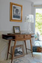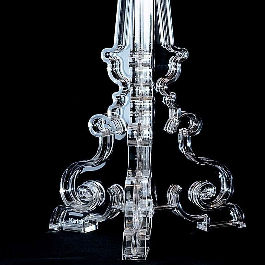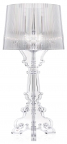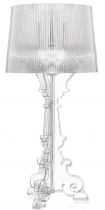 Véritable best-seller de Kartell, Bourgie est une lampe au style inégalable où classicisme, richesse et tradition se conjuguent parfaitement avec ironie et innovation. Sa base, de style baroque, est constituée de trois niveaux decorés qui s’entrecroisent et son ample abat-jour est réalisé avec un effet plissé de manière à créer, lorsque la lampe est allumée, un jeu de mille reflets. Grâce à un système d’accrochage particulier de l’abat-jour, il est possible d’obtenir trois hauteurs différentes ( 68,73 et 78 cm ). Chacun peut choisir de monter la lampe à la hauteur qu’il préfère puis la modifier à sa guise selon l’utilisation qu’il veut en faire. Bourgie peut ainsi se transformer en superbe lampe d’agrément, en lampe de table ou en lampe de bureau. Du fait de sa polyvalence et de sa grande expressivité, on peut la placer sur une desserte du salon ou l’utiliser comme lumière d’ambiance sur la table de nuit, comme sculture à même le sol ou comme lampe de lecture.
