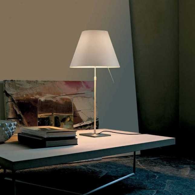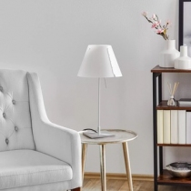La lampe Costanzina de Luceplan, un chef-d'œuvre de design créé par Paolo Rizzatto en 1986. Icône de l'éclairage italien, cette lampe de table allie sobriété et sophistication pour s'adapter à tous les environnements, du salon à la chambre à coucher, en passant par les bureaux et espaces professionnels.