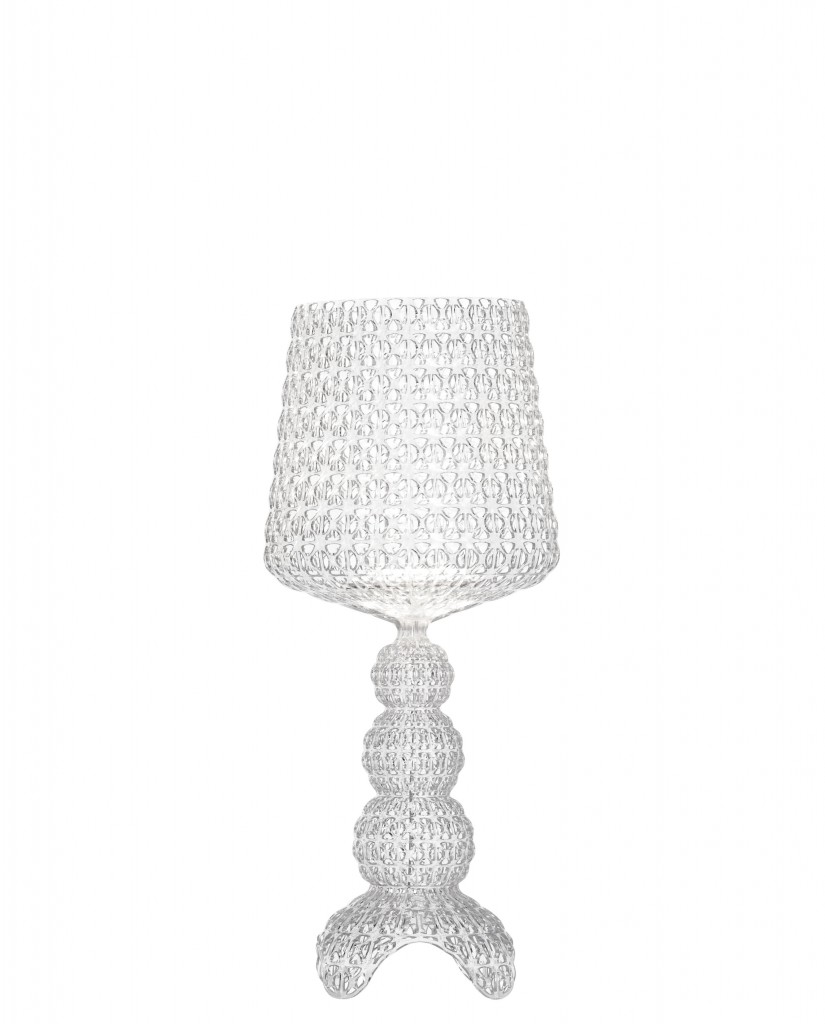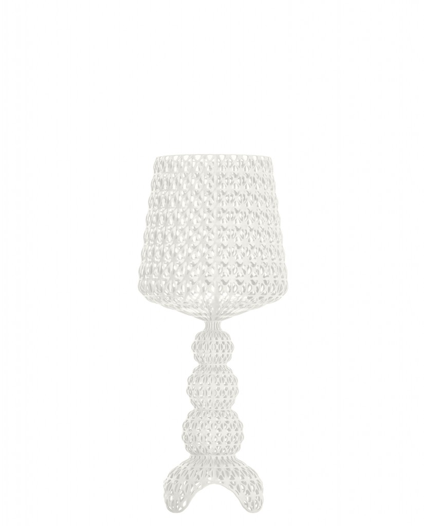 La lampe de table mini Kabuki est parues d'une délicate dentelle qui enveloppe sa silhouette aux formes généreuses. Sa surface ajourée aux motifs qui s'entrelacent rappellent le style baroque revisité par l'utilisation du plastique. Le travail du plastique et de pleins et de vide laisse paraitre un jeu de projection d'ombre lorsque la lampe est allumée. A travers cette lampe Kartell explorer le champs des possibles et fait du plastique une matière pleine de finesse. La Kabuki utilise la technologie par injection qui permet d’obtenir cette structure tramée qui rappelle la technique artisanale du crochet.