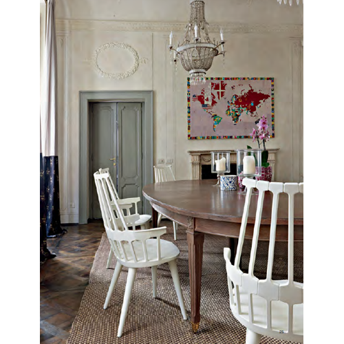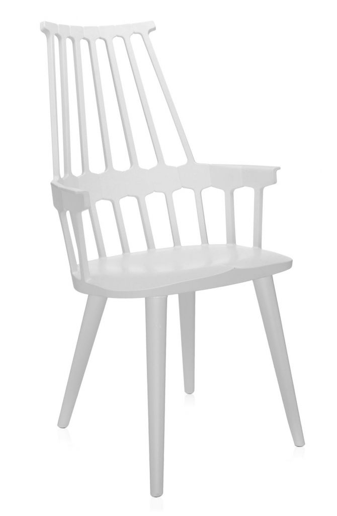 Comback est le nom de ce nouveau fauteuil entrant dans la collection Kartell, qui a fait sensation au Salon Del Mobile 2012: une réinterprétation du célèbre fauteuil Windsor de la glorieuse Angleterre du XVIIIe que Patricia Urquiola a su revisiter avec brio: une assise et dossier en technopolymère thermoplastique teinté dans la masse, décliné dans plusieurs coloris, sur des pieds en frêne teinté chêne ou laqué. Comback affiche des lignes aériennes avec son dossier à sept dents qui s'allonge au niveau des reins, tandis que l'assise monocoque, bordée de barreaux en arc de cercle, offre confort et ergonomie. Modernité et légèreté caractérisent le fauteuil Comback doué d'une forte présence visuelle liée à son design et à l'émotion culturelle qu'il suscite.