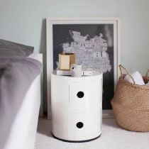 Créé par Anna Castelli Ferrieri co-fondatrice de Kartell, le componibili n’a pas pris une ride depuis 1968. Ce meuble de rangement s’utilise dans toutes les pièces de la maison avec des usages assez variés comme table de nuit, meuble de rangement dans le salon, la cuisine, le bureau, ou la salle de bain... Il est épatant de sa grande fonctionnalité et praticité, ce qui lui a valu d’être exposé au Musée d'art moderne de New York et au Centre Pompidou. Le componibili existe en deux, trois ou quatre éléments non dissociable en diamètre 32cm, ou en élément composable de diamètre 42cm. Cette année une nouvelle gamme de couleur tendance agrandie la famille.