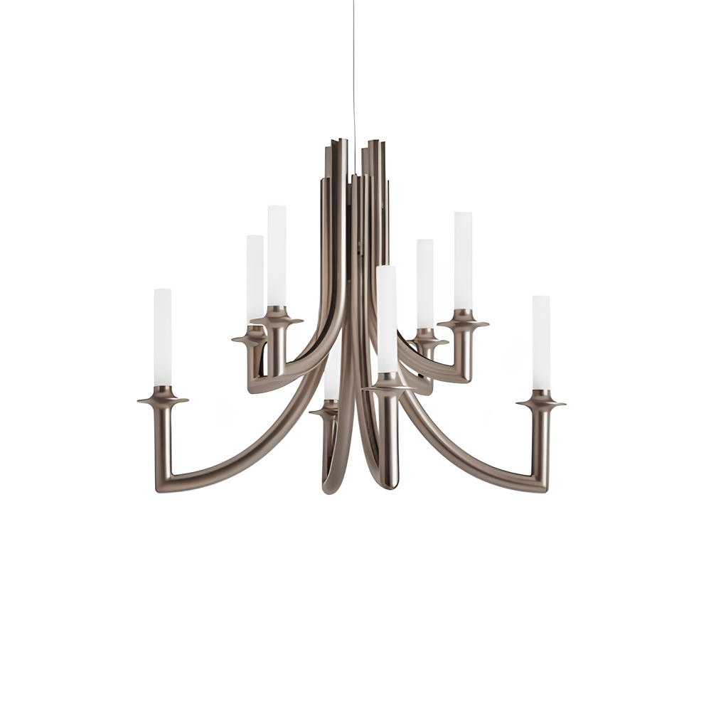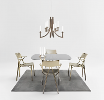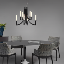 Philippe Starck réinvente le lustre traditionnel avec la suspension Khan de Kartell, une pièce unique qui marie les influences classiques à un design moderne. Inspirée par l'opulence des palais du XVIIIe siècle, Khan se distingue par son allure majestueuse et son minimalisme contemporain. Avec ses huit bras élancés ornés de diffuseurs cylindriques en blanc opalin, elle évoque subtilement l'image des chandeliers d'antan, tout en adoptant une esthétique épurée et résolument actuelle.