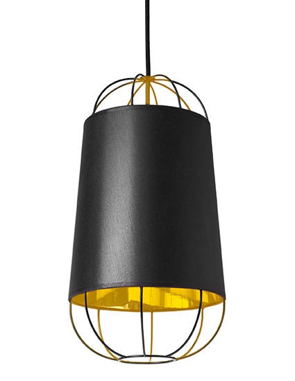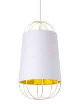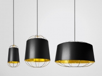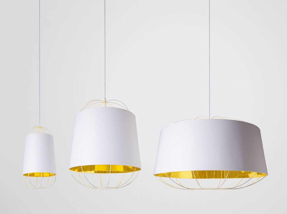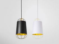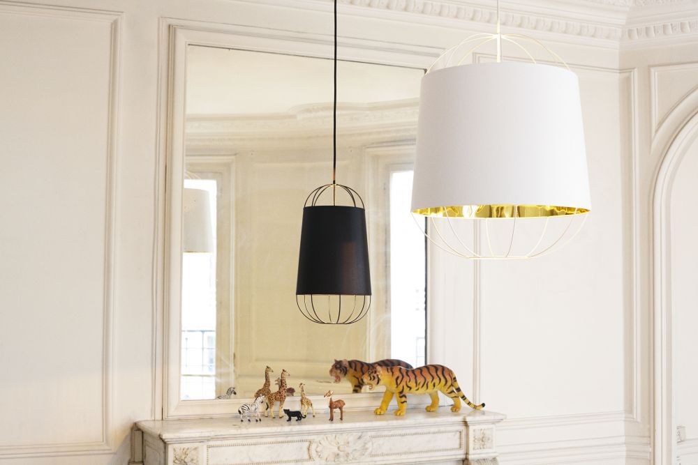 Le designer Sam Baron nous livre une interprétation luxueuse de la traditionnelle lanterne en papier chinoise. L'élégant abat-jour revêtu de coton est habillé d'une structure "cage" en acier. Aérienne et ultra graphique, cette structure ajourée apporte une dimension contemporaine à cette suspension. Très chic, la finition or à l'intérieur de l'abat-jour reflète la lumière, fournissant un éclairage à la fois puissant et chaleureux.