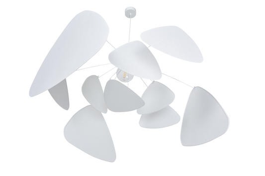 • Matière Structure en métal peint, 10 écrans en papier. Équipée d’une cordelière textile et d’un pavillon en métal adaptable DCL.