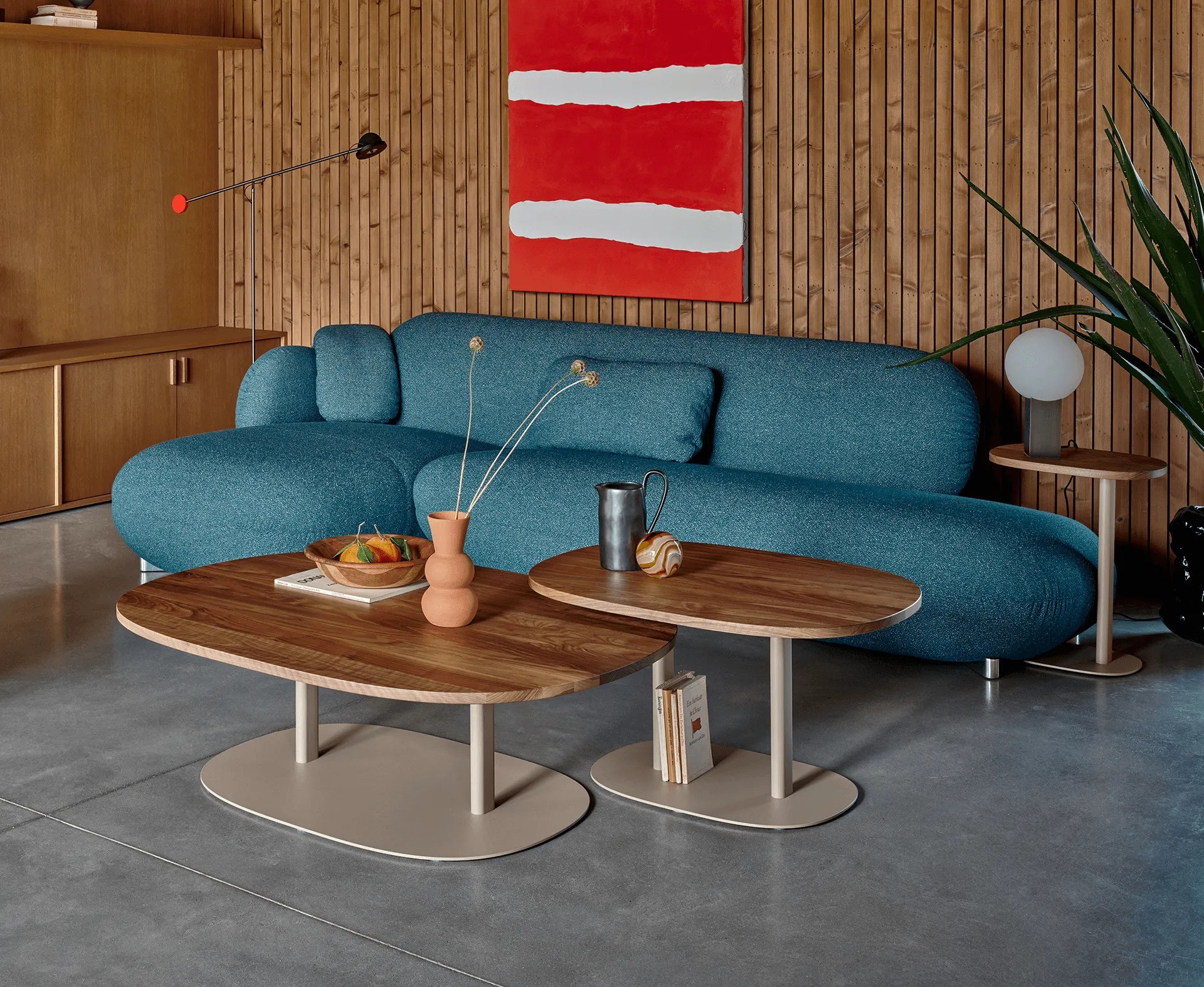 Les tables basses Toveri de Leolux marient harmonieusement courbes élégantes et matériaux robustes, créant une collection unique de tables basses au design original. Conçue par Studio Truly, cette série se caractérise par des plateaux qui semblent flotter au-dessus de leur base, grâce à une liaison centrale subtilement déplacée. Chaque table basse Toveri se décline en plusieurs finitions, offrant des plateaux en chêne ou noyer massif, laqué ou céramique, ainsi que des piètements disponibles en revêtement de poudre E2200 (Nuit) ou dans d’autres coloris. Le soin apporté aux détails et la symétrie parfaite entre le plateau et la base créent une illusion d'ombre captivante. Polyvalente, la collection Toveri propose différentes hauteurs et dimensions, ce qui permet de combiner ces tables basses Leolux avec d'autres éléments de votre intérieur, pour une harmonie parfaite.