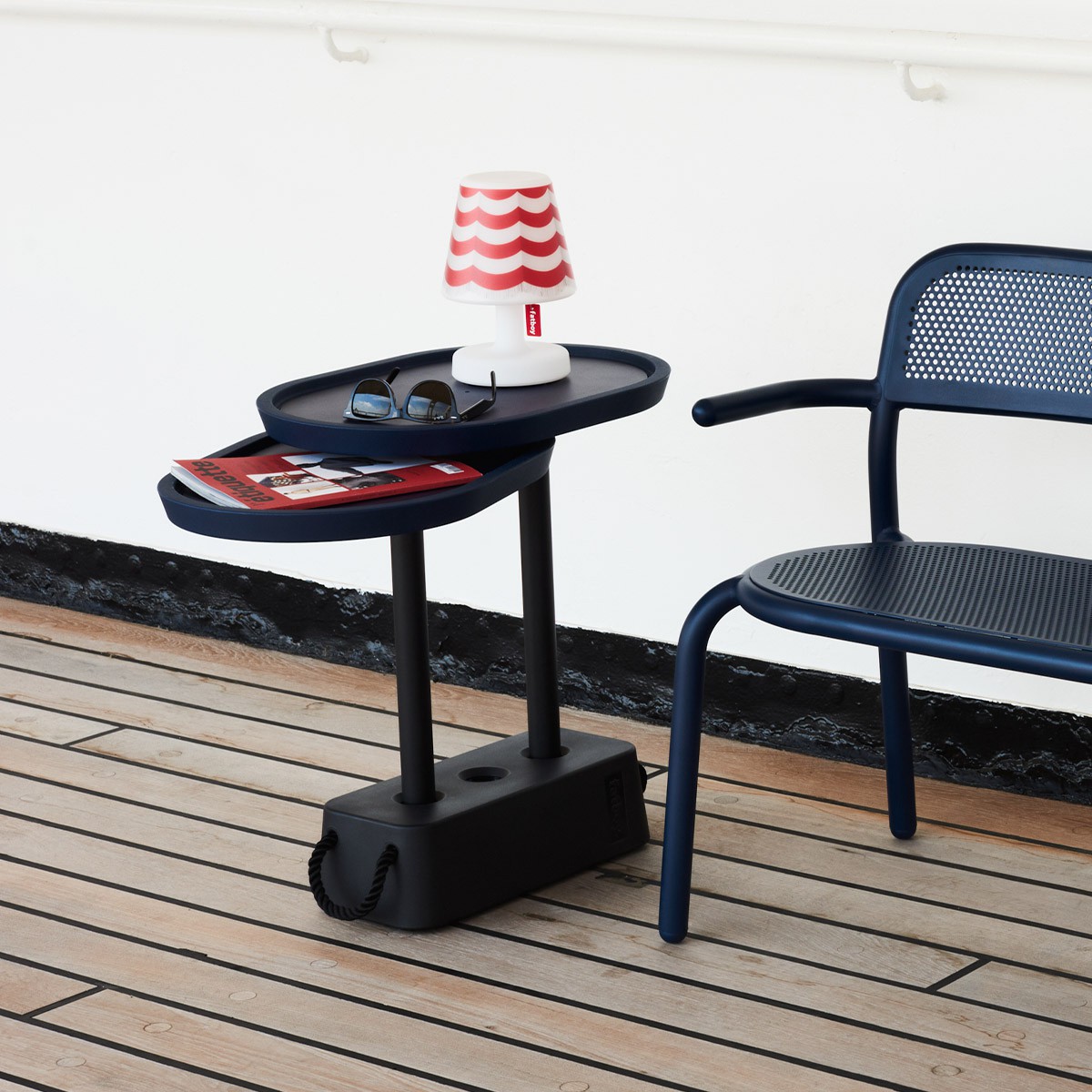 Alors que vous vous dorez au soleil, la dernière chose que vous voulez : devoir vous lever pour aller chercher un verre ou répondre au téléphone. La table d'appoint Brick Fatboy vous permet de garder toutes vos affaires au près de vous pour ne plus avoir à bouger une fois que vous êtes délicatement installé dans votre jardin. La Brick Table Fatboy est fabriquée à partir de matériaux recyclés très résistants et en acier, qui conserve sa belle apparence par tous les temps. Sa lourde base ressemble à un bloc de béton. Remplissez-la d'eau ou de sable et nous vous mettons au défi de la renverser. Le dessus de table Fatboy peut facilement être installé dans l'un des trois orifices. Et grâce au cordon fixé au pied, c'est une table d'appoint que vous pouvez faire glisser n'importe où dans votre jardin.