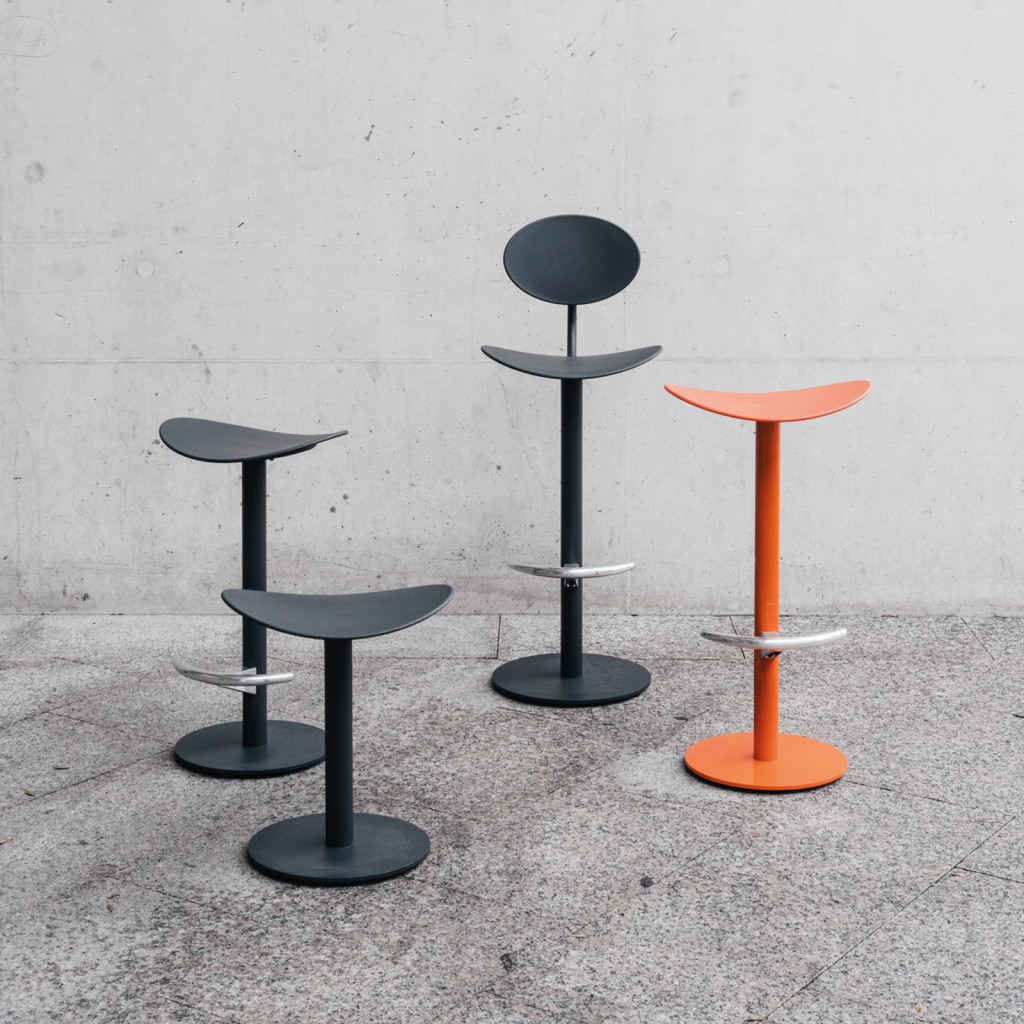 Fonctionnel, résistant, polyvalent, le tabouret Coma est disponible dans trois versions (hauteur d'assise: 75, 65 ou 45 cm) et dans divers coloris.