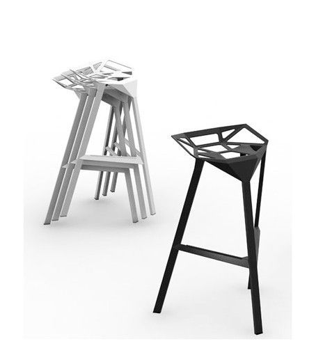 La collection ONE de Konstantin Grcic est devenue emblématique chez Magis. Caractérisée par des lignes géométriques audacieuses, les tabourets de bar Stool One se compose de matériaux industriels: Stool One est ici une version colorée, conçue pour l'extérieur: il se compose de pieds en aluminium verni  en polyester et d'une assise en fonte d'aluminium traité et peint. La hauteur d'assise est de 77 cm. Une présence graphique doublée d'un design original commun à toute la collection "One".  Les tabourets de bar Stool One sont disponibles en version colorée conçue pour l'extérieur ou en Alu Poli pour l'intérieur, et en hauteur 77 cm ou 67 cm.