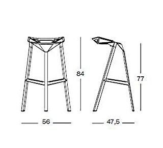 • Caractéristiques Dimensions : H 84 x L 56 x P 47.5 cm. Assise : 77 cm. Empilable par 4. Intérieur extérieur. Poids 7.6 kg.